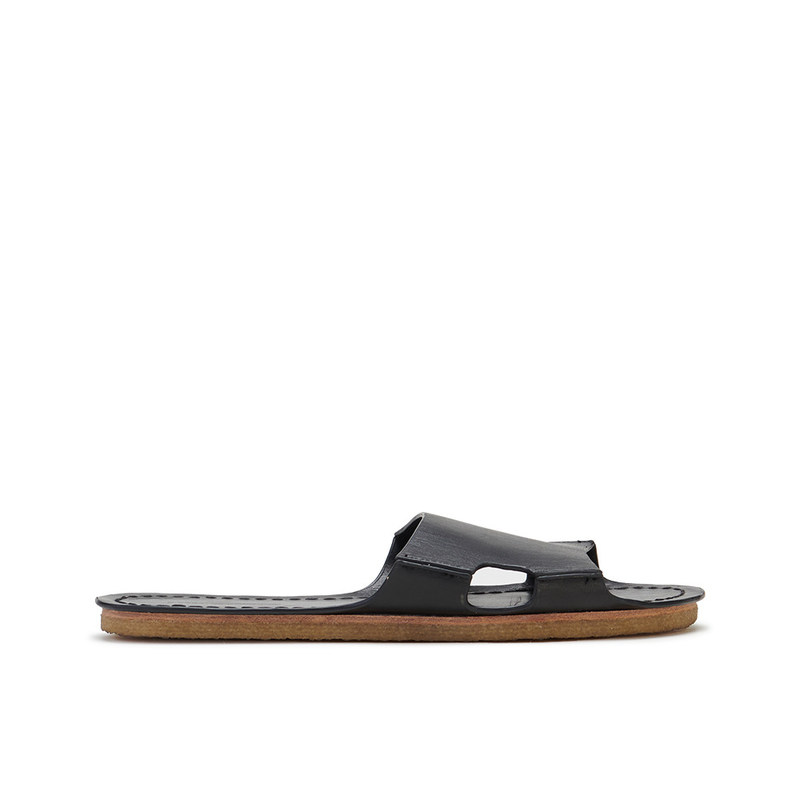 Γυναικεία πλατά σανδάλια από δέρμα αγελάδας με ανοιχτό δάχτυλο και σχεδιασμό γλίστρου